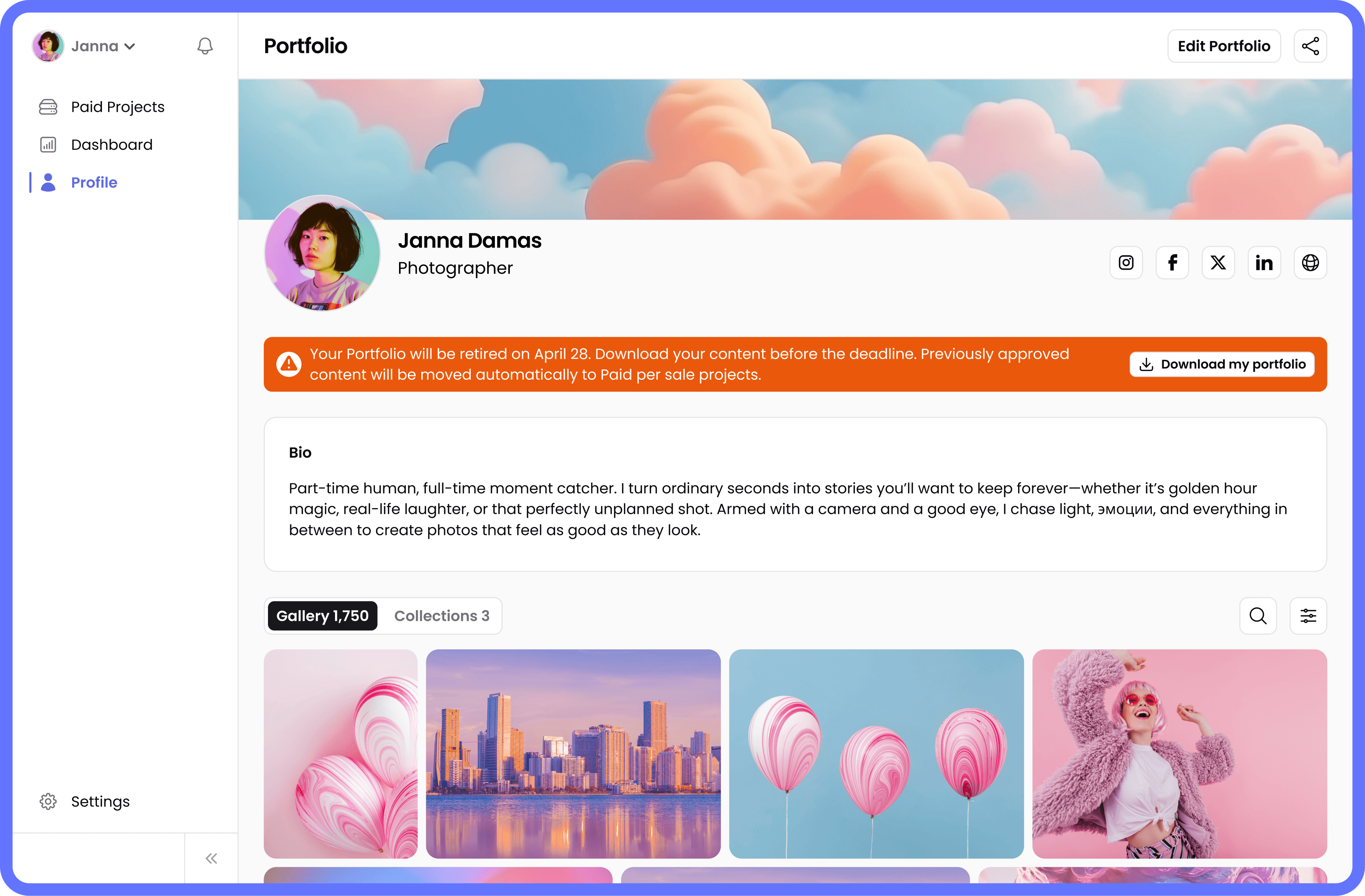 The Portfolio as it currently exists will be retired. But not all of your content will be removed from Wirestock.