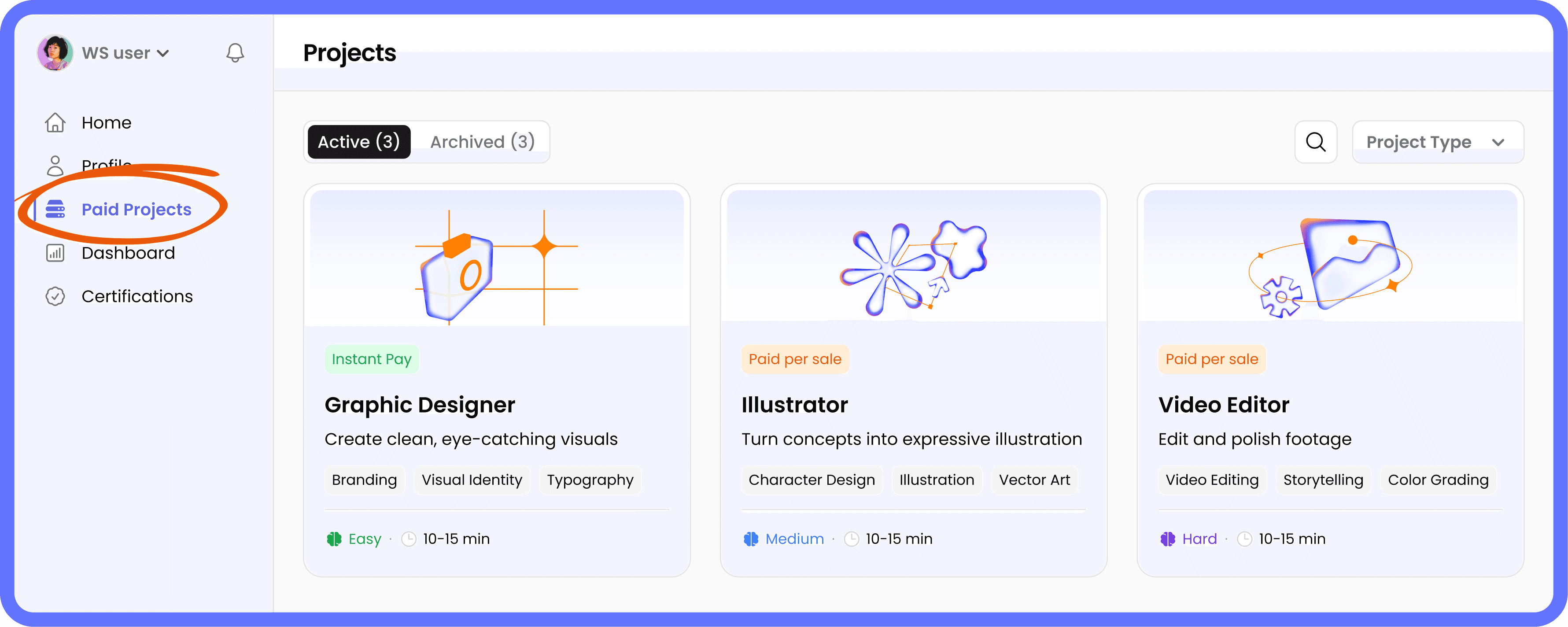 Paid per sale projects are Wirestock’s new home for licensable content. They work differently from the old Marketplace, where your content sat passively and waited to be found.