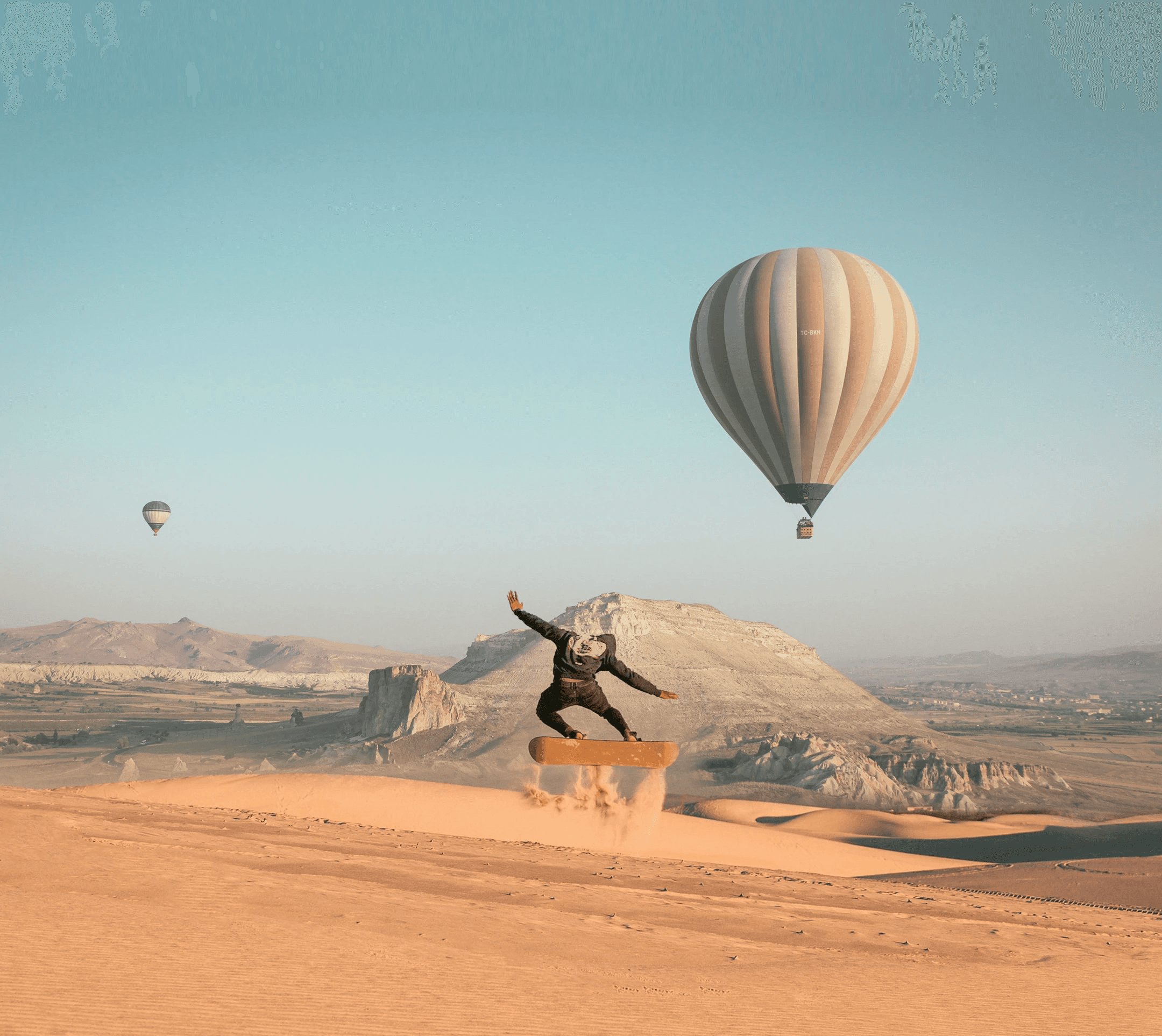 Add a man doing tricks with a board.