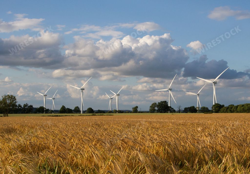 Media type: PhotoDescription: A scenic landscape featuring a picturesque backdrop of rolling hills and fields with wind turbines