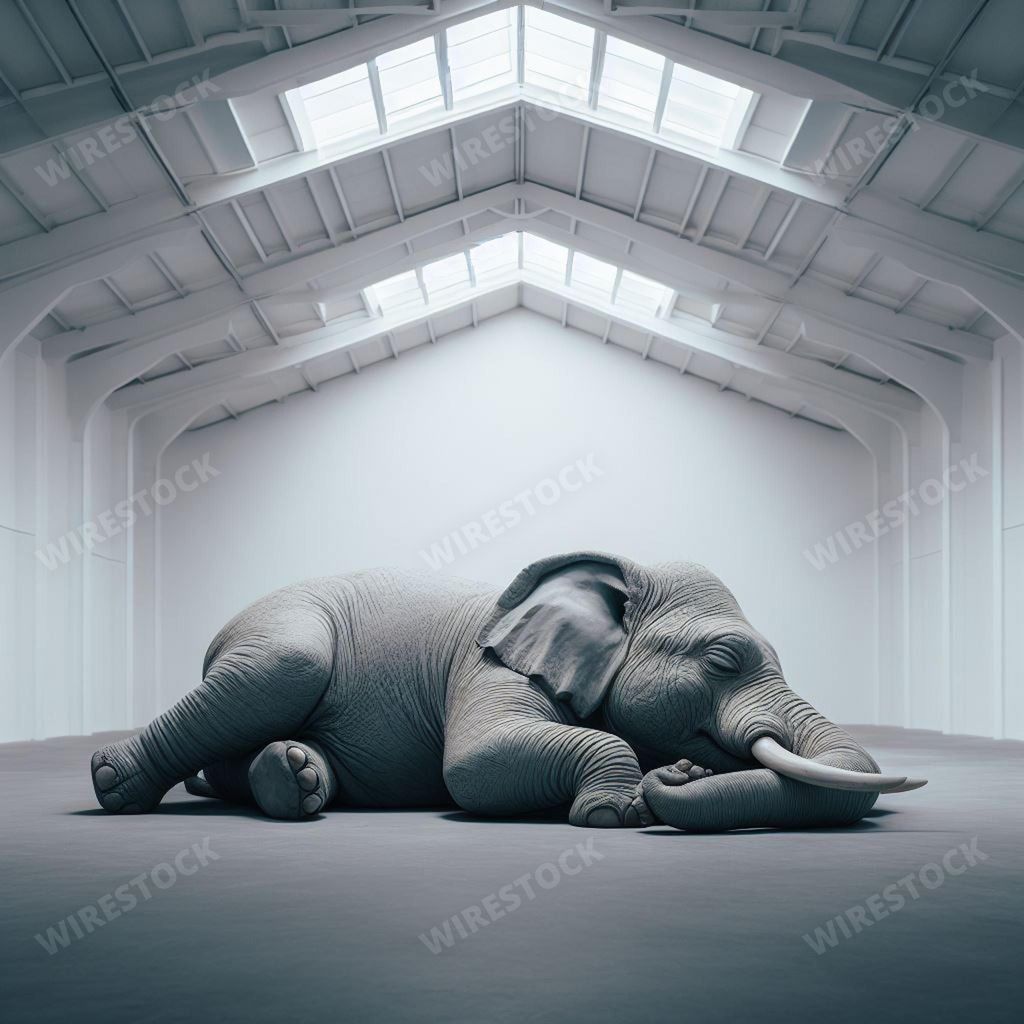 Media type: IllustrationDescription: An AI generated illustration of an Asian elephant lying on the ground in room a relaxed position