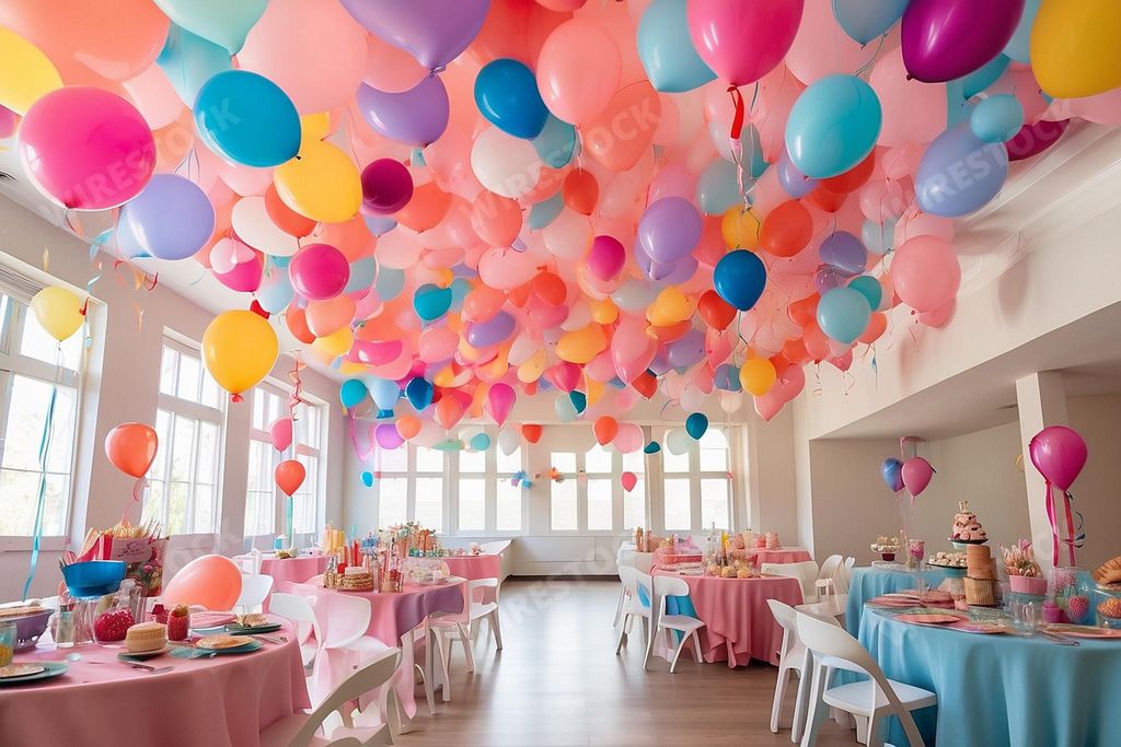 AI generated image: Stable DiffusionCaption:: a birthday party with the ceiling covered in colorful balloonsPost date: Oct 21, 2023ID: 21674529File size: 2688x1792 pixelsFormat: jpeg