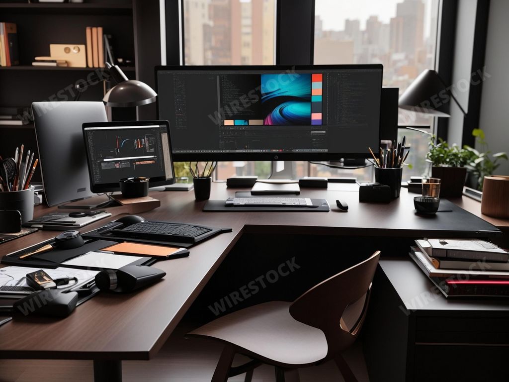 AI generated image: Stable DiffusionCaption:: An Office Desk of a Graphic DesignerPost date: Nov 1, 2023ID: 21816553File size: 3072x2304 pixelsFormat: jpeg