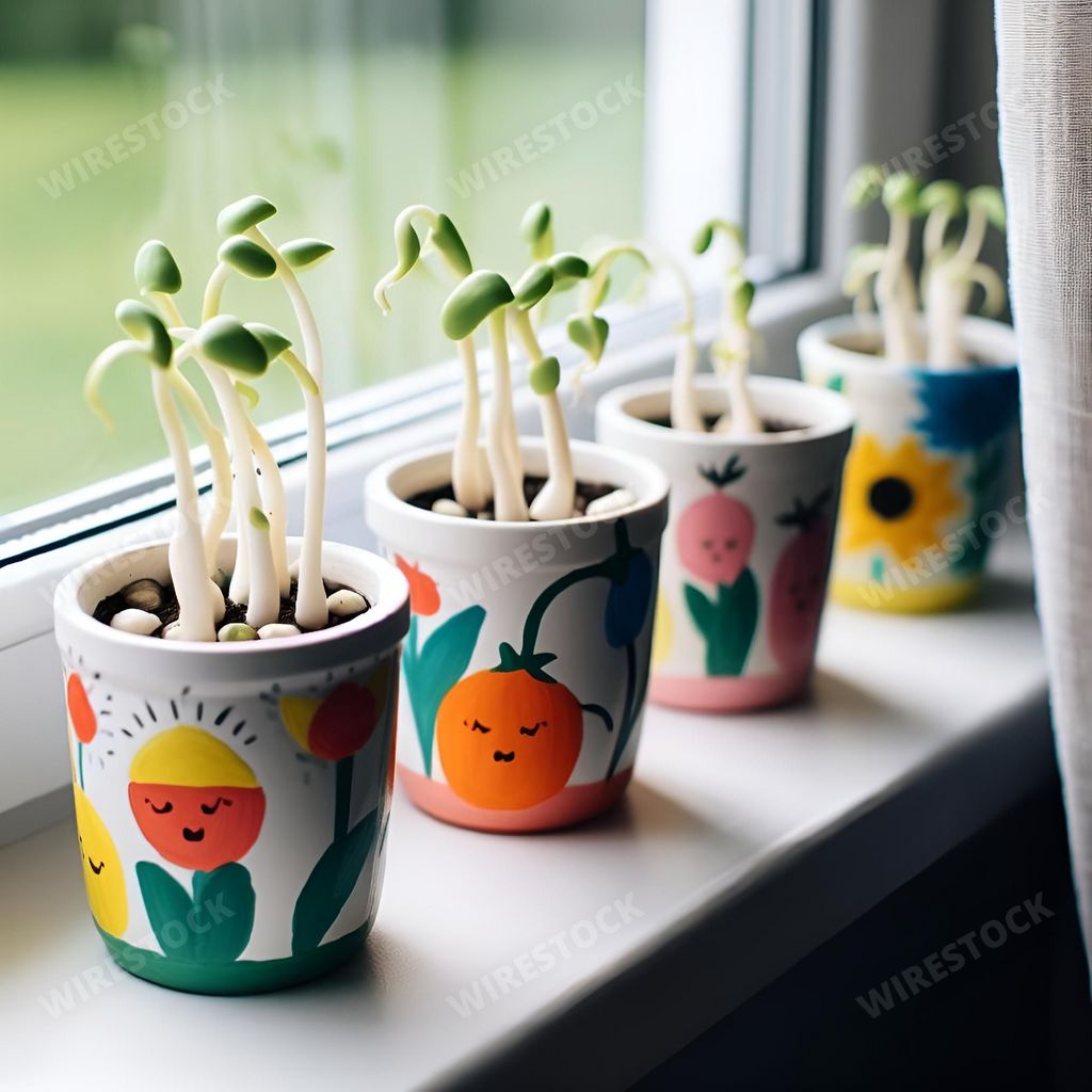 Amy in RL | three pots with planters with little plants in them on the windowsill