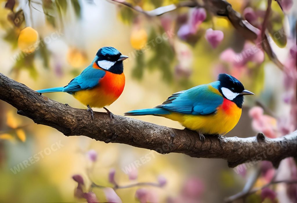 Amy in RL | two colorful birds are perched on a tree branch while in the photo