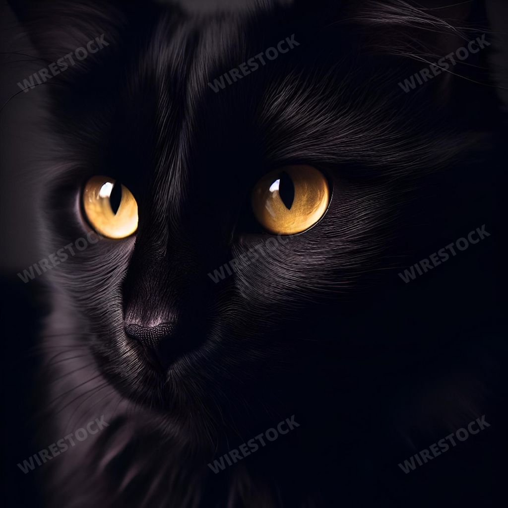 Media type: IllustrationDescription: An AI generated illustration of An inquisitive black cat stares into the camera with its bright yellow eyes, as if it is intrigued by its presence