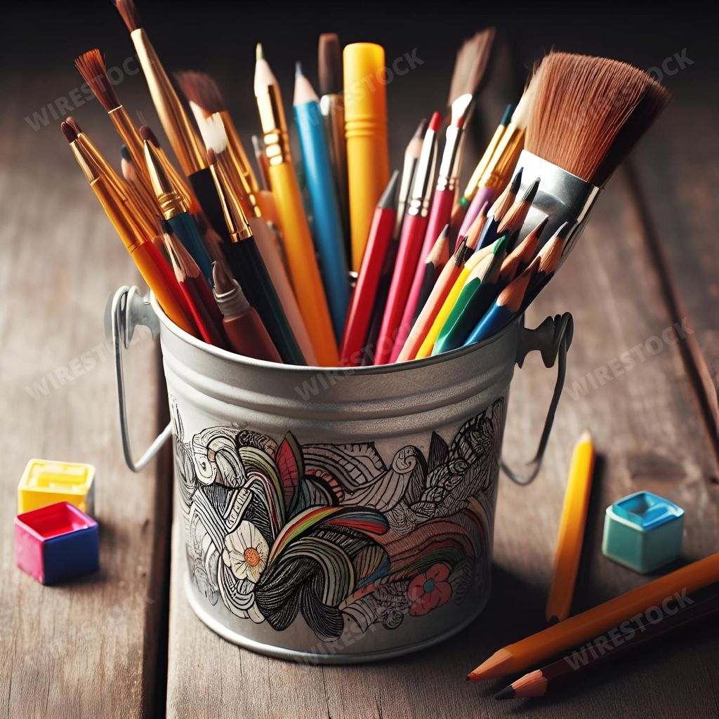 Caption:: Bucket of Art Supplies
