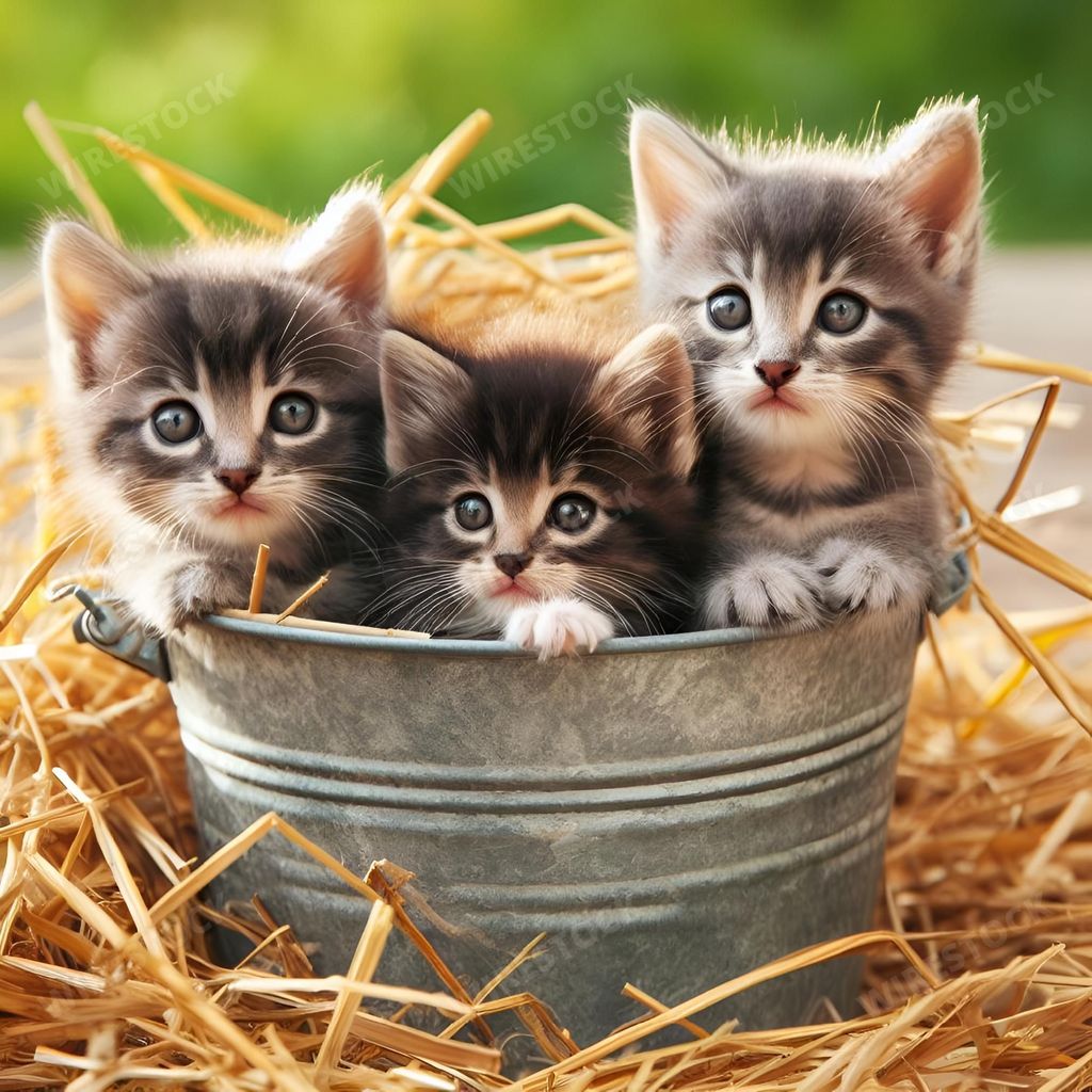 Amy in RL | three little kittens sitting in a bucket on top of hay