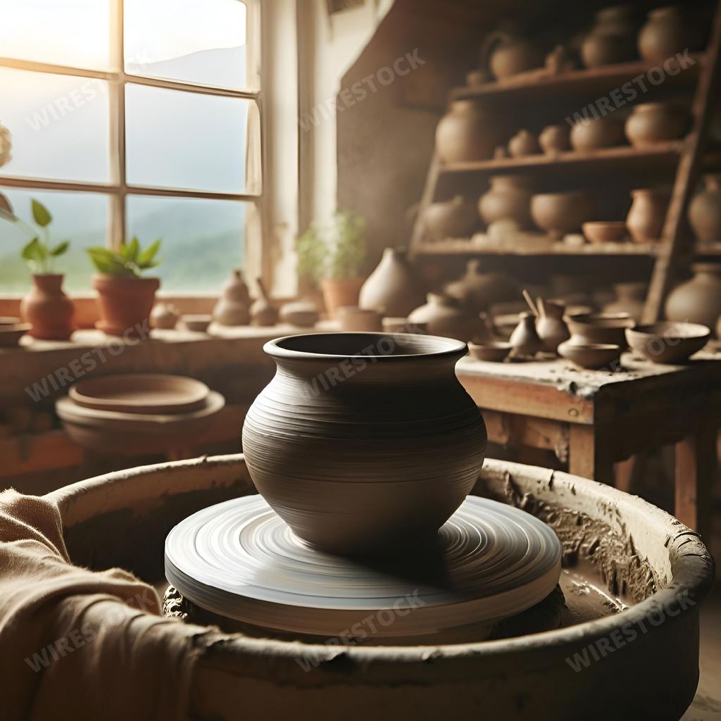 Media type: IllustrationDescription: An AI generated illustration of a close-up of a ceramic pot in a modern workspace