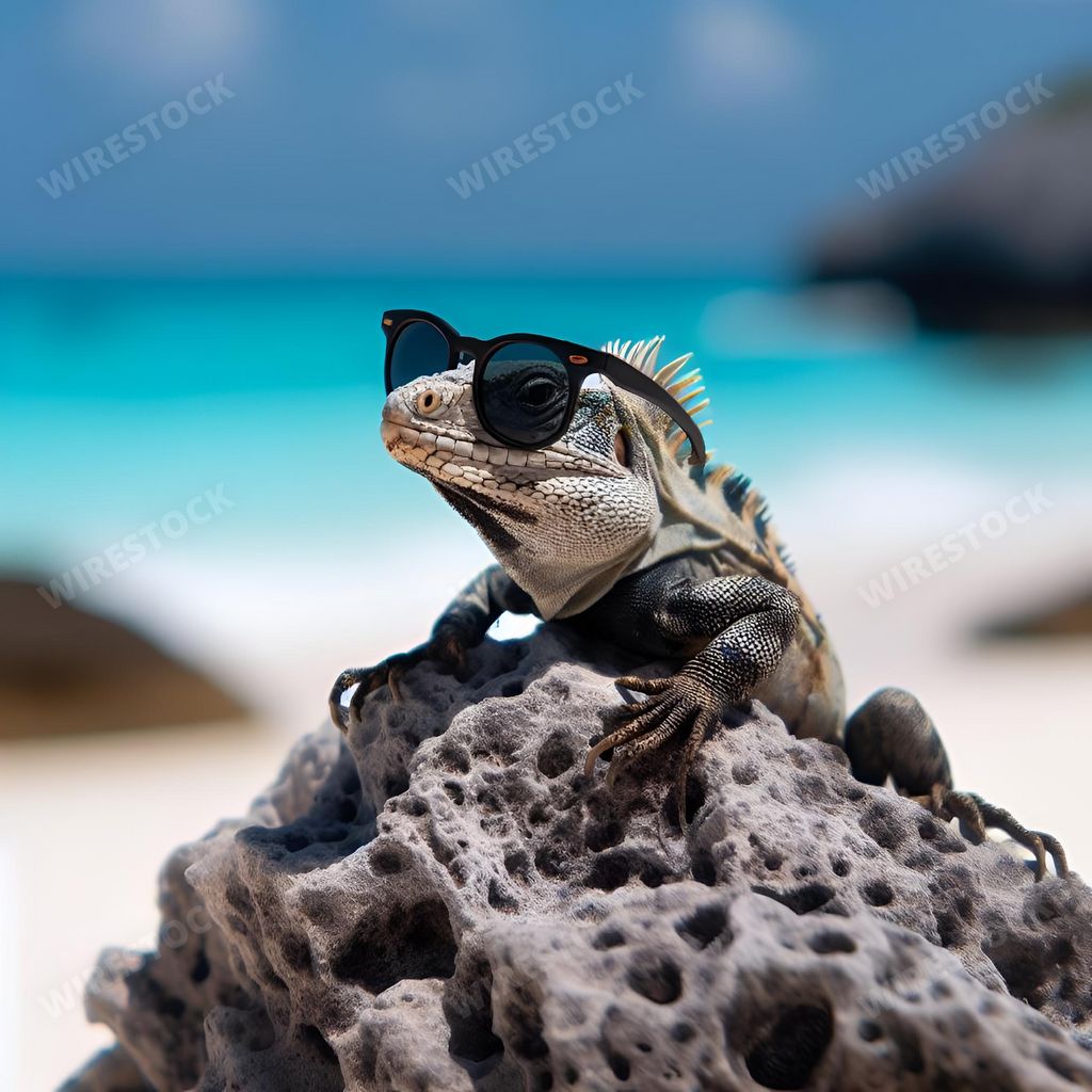 Amy in RL | a iguana with sunglasses on sitting on a rock