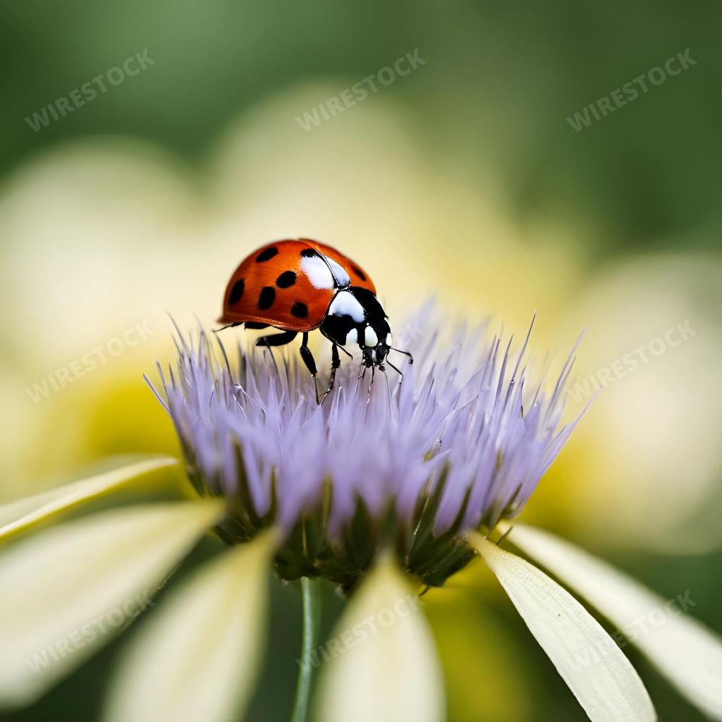 Media type: IllustrationDescription: An AI-generated illustration of a ladybug on a flower against a green backdrop