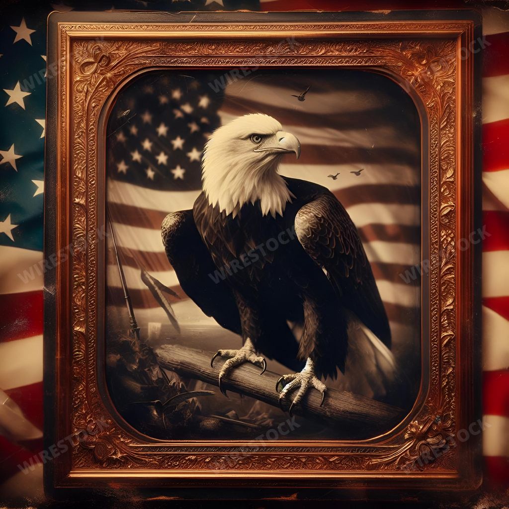 Amy in RL | an eagle sitting in a frame on top of an american flag