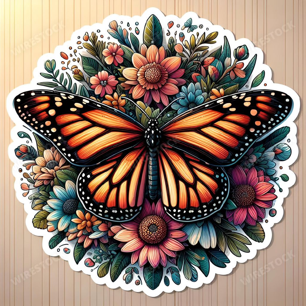 Amy in RL | a colorful butterfly with colorful flowers surrounding it on a wooden surface
