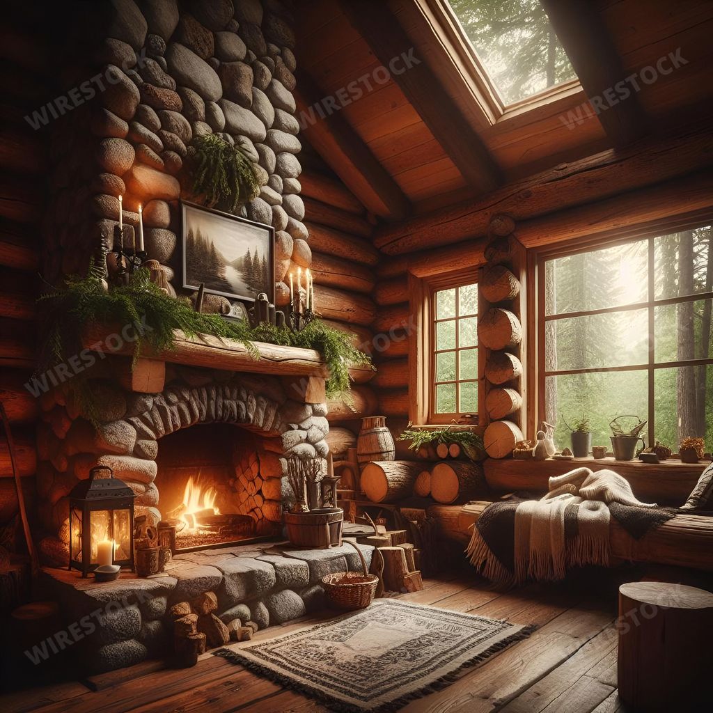 Amy in RL | a cozy cabin sitting area in the woods with a roaring fire