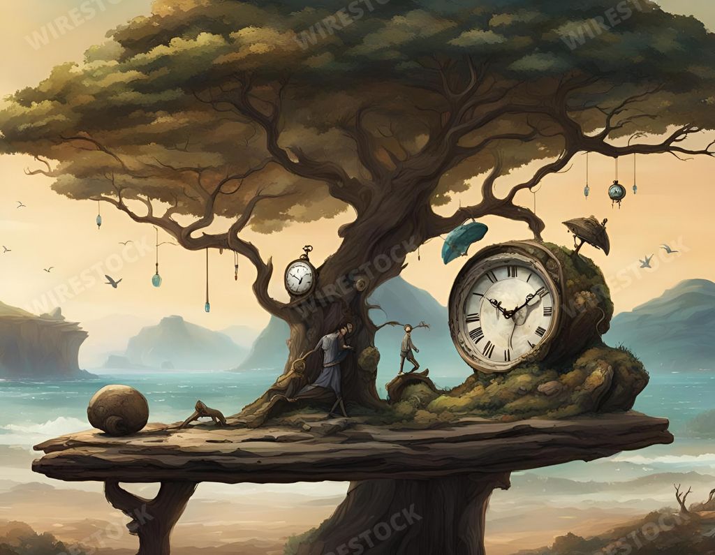 Ignacio Ruiz Herrera | a cartoon style painting of people, animals, and a tree in the distance