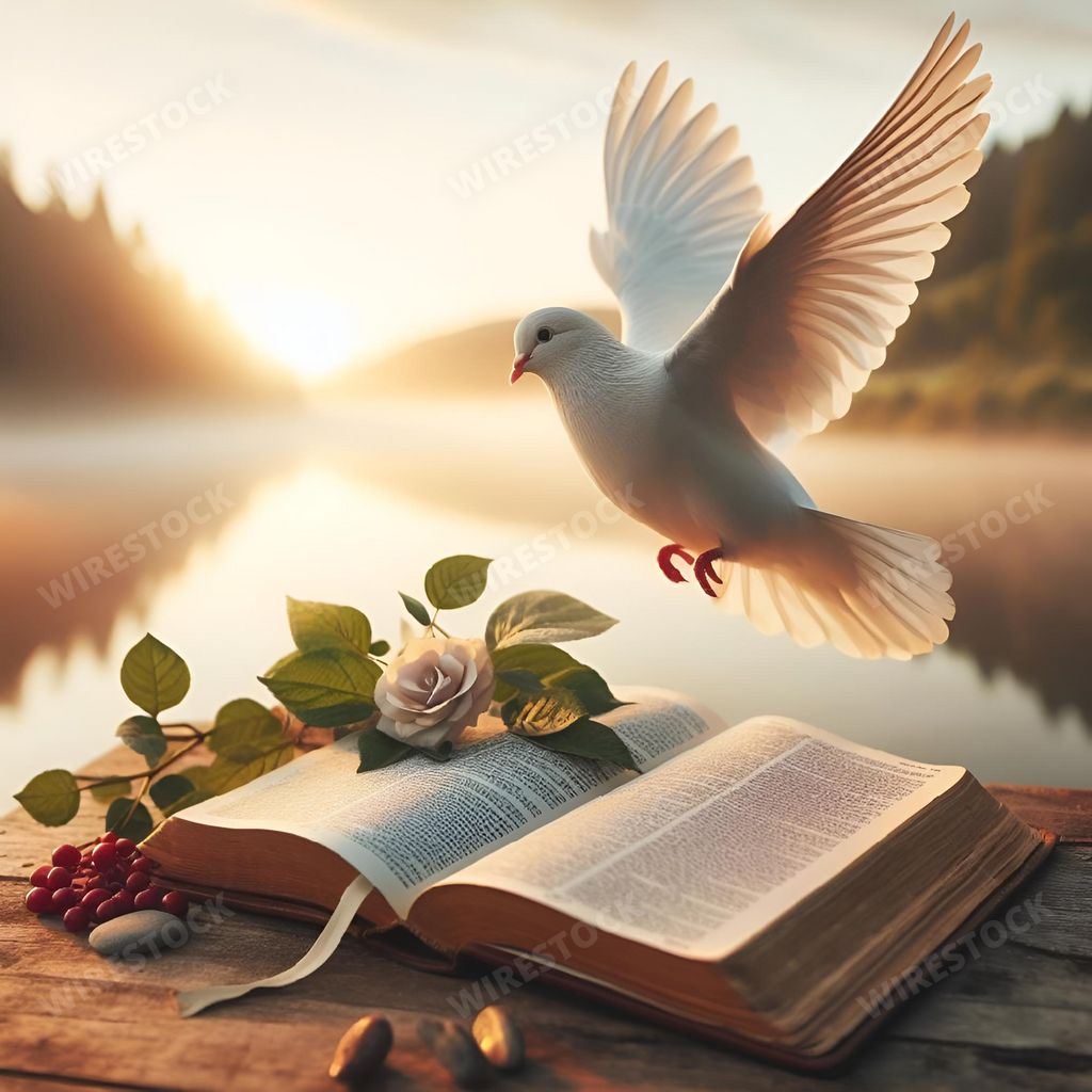 Caption:: Dove and a bible