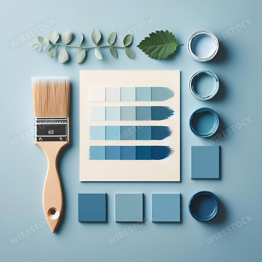 Media type: IllustrationDescription: An AI-generated illustration of an artistic paintbrush, palette swatches on a blue background