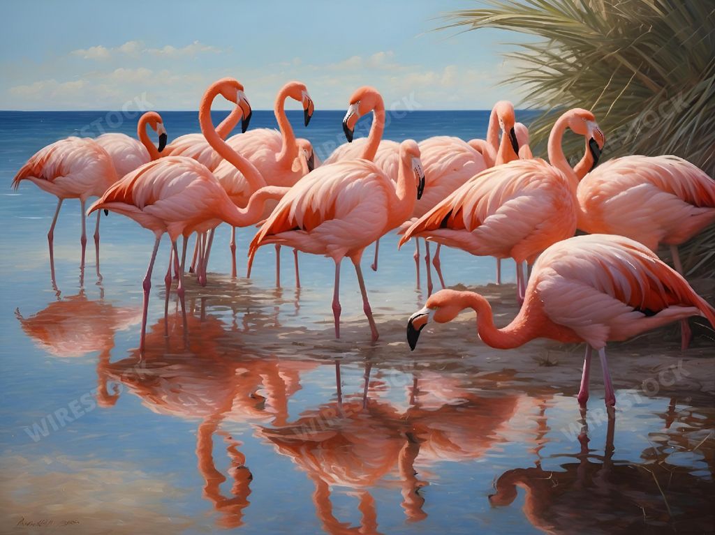 Media type: IllustrationDescription: An AI illustration of a group of a flamingo painting