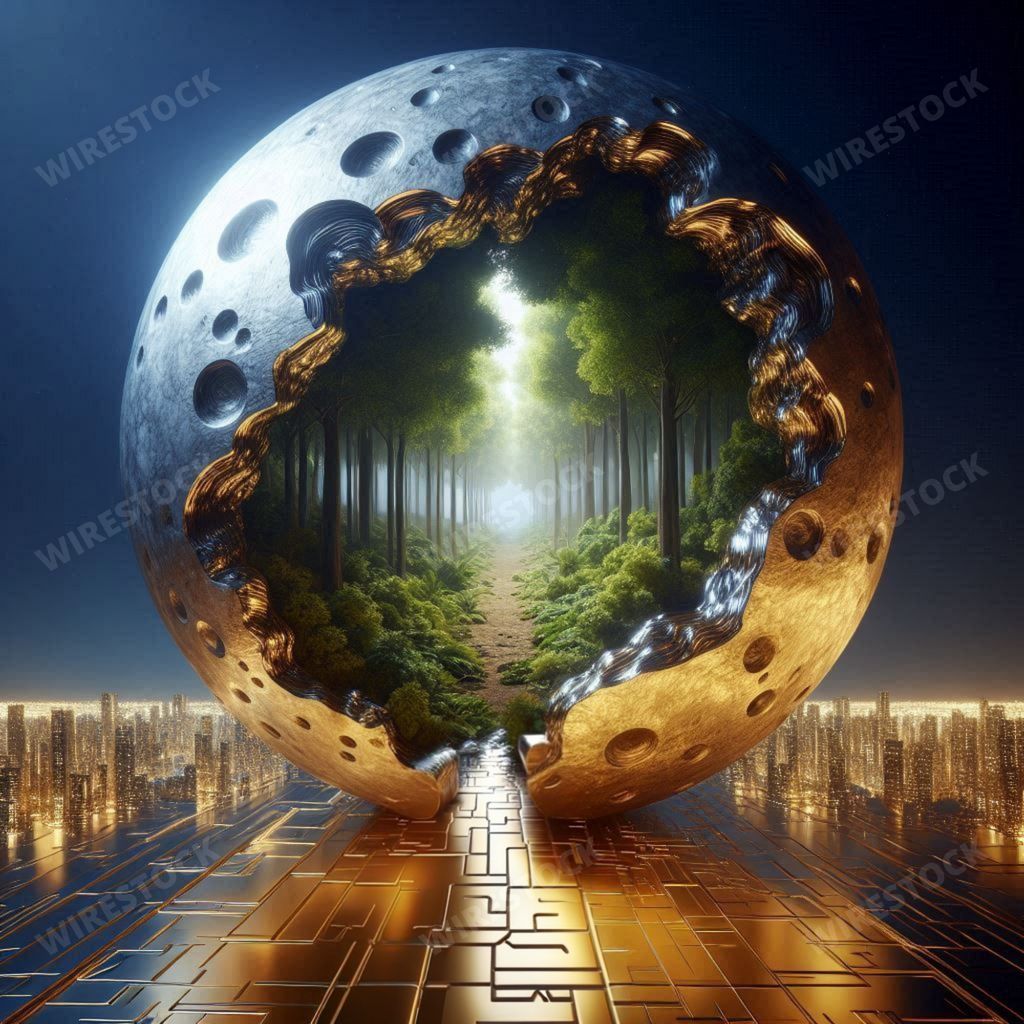 Ashwini Vikas Patil | a futuristic city surrounded by an earth's reflection with trees in the middle