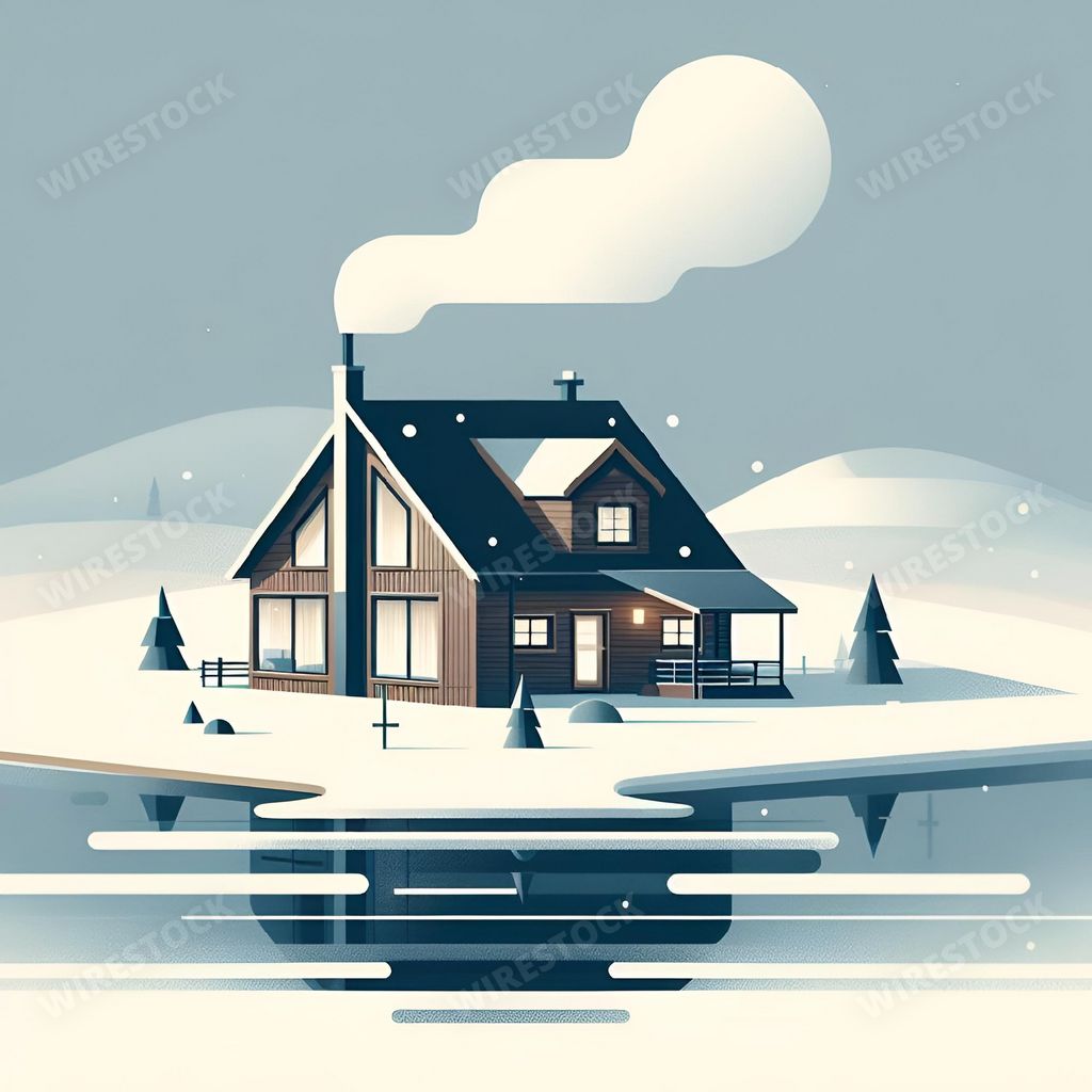 Amy in RL | a house and snow scene with mountains in the background and a boat below it