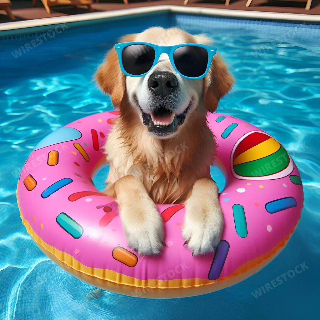 Amy in RL | a cute dog in sunglasses on top of a pink pool float