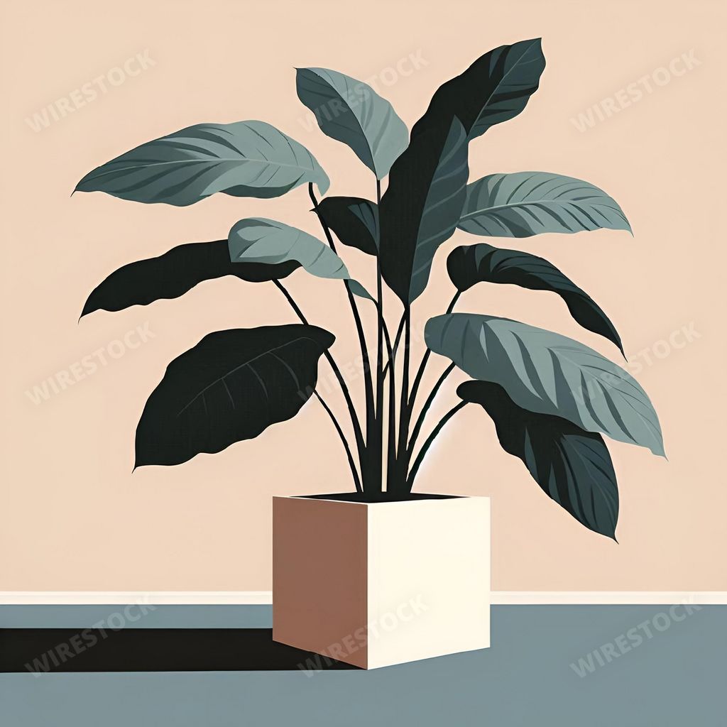 Media type: IllustrationDescription: An AI generated illustration of minimalistic potted plant with large leaves on a beige background