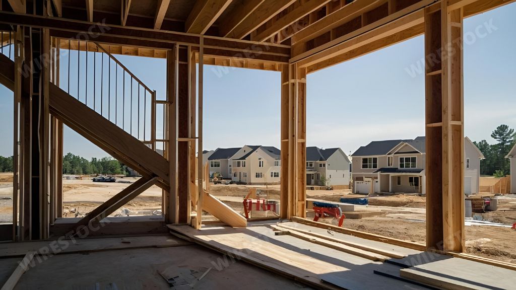 Amy in RL | View from inside a house under construction looking out at a suburban neighborhood with newly built homes.