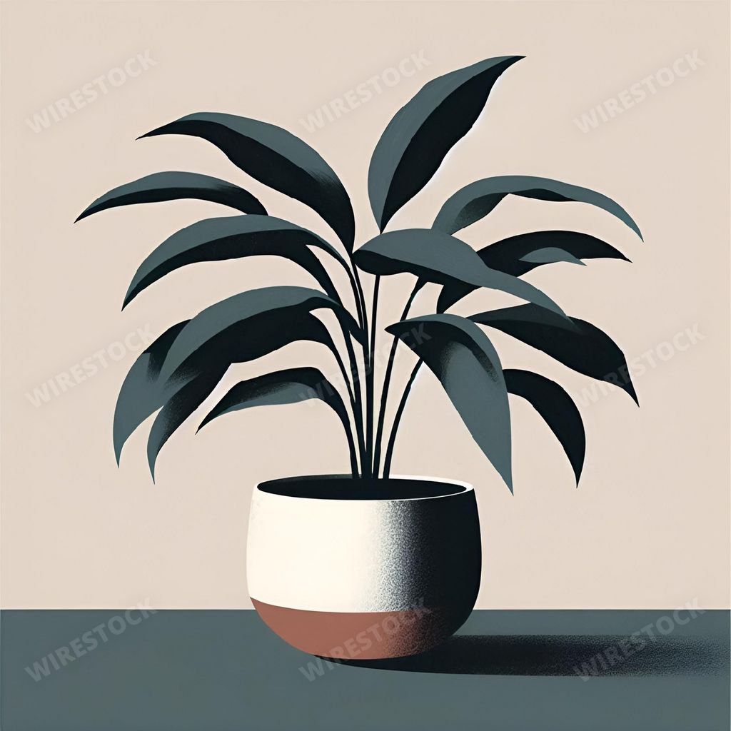 Amy in RL | Minimalist illustration of a potted plant with broad leaves in a modern pot against a neutral background.