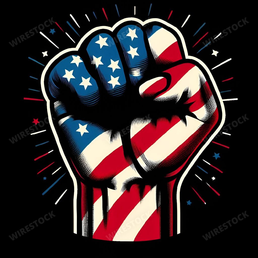 Media type: IllustrationDescription: An AI generated illustration of a raised fist with American flag colors and stars