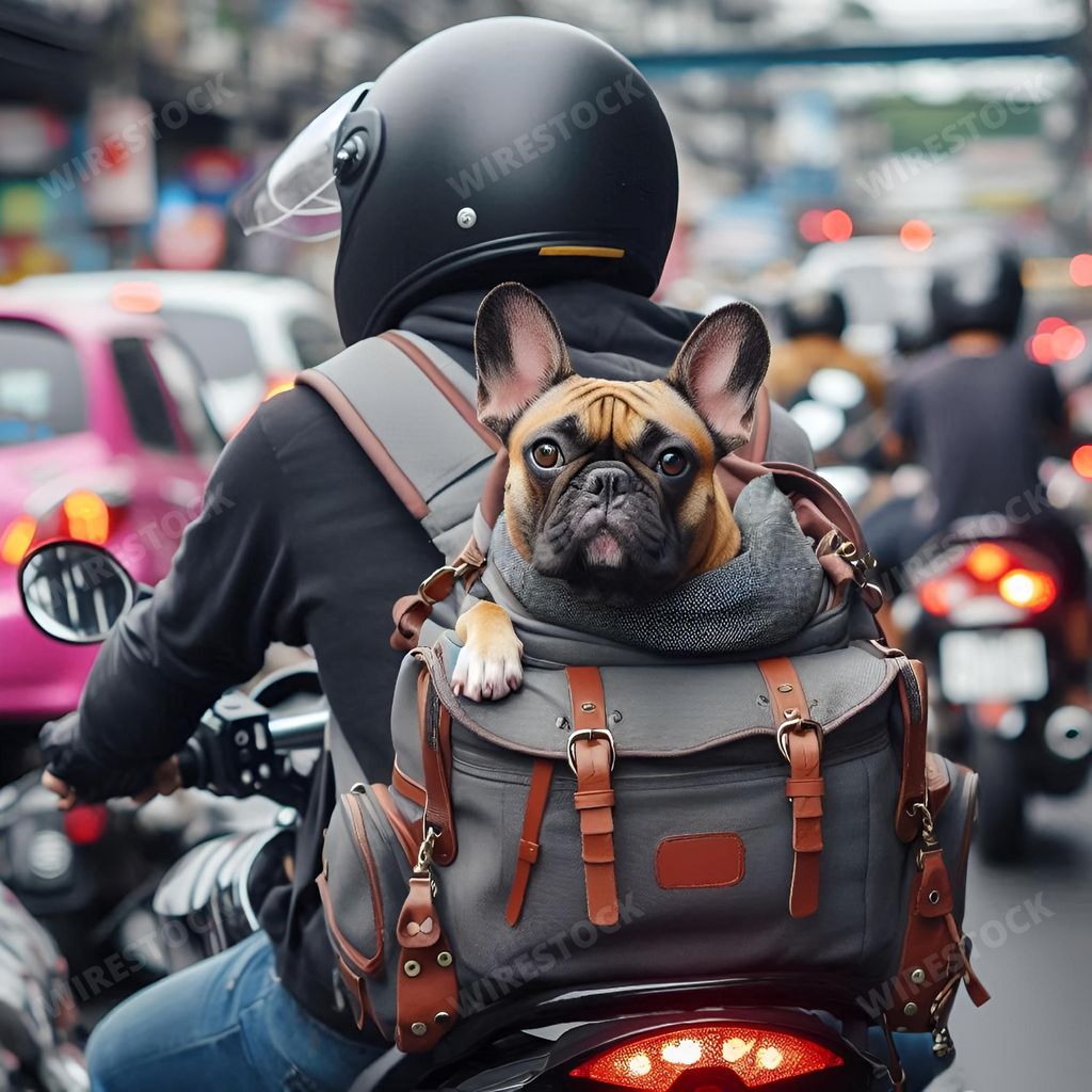 Amy in RL | Motorcyclist with French Bulldog in Backpack