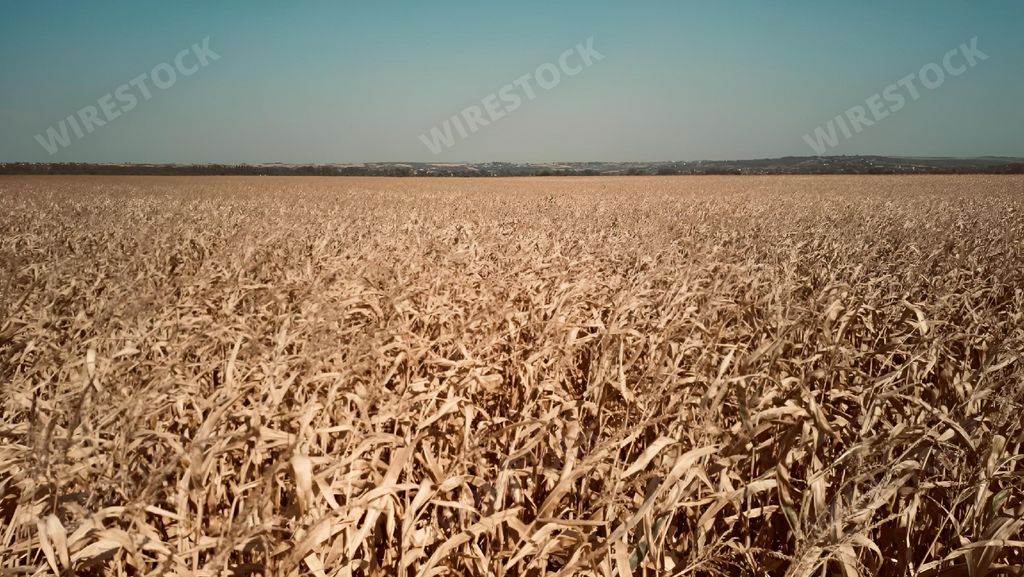 Media type: PhotoDescription: A vast field of golden wheat stretching to the horizon under a clear blue sky.