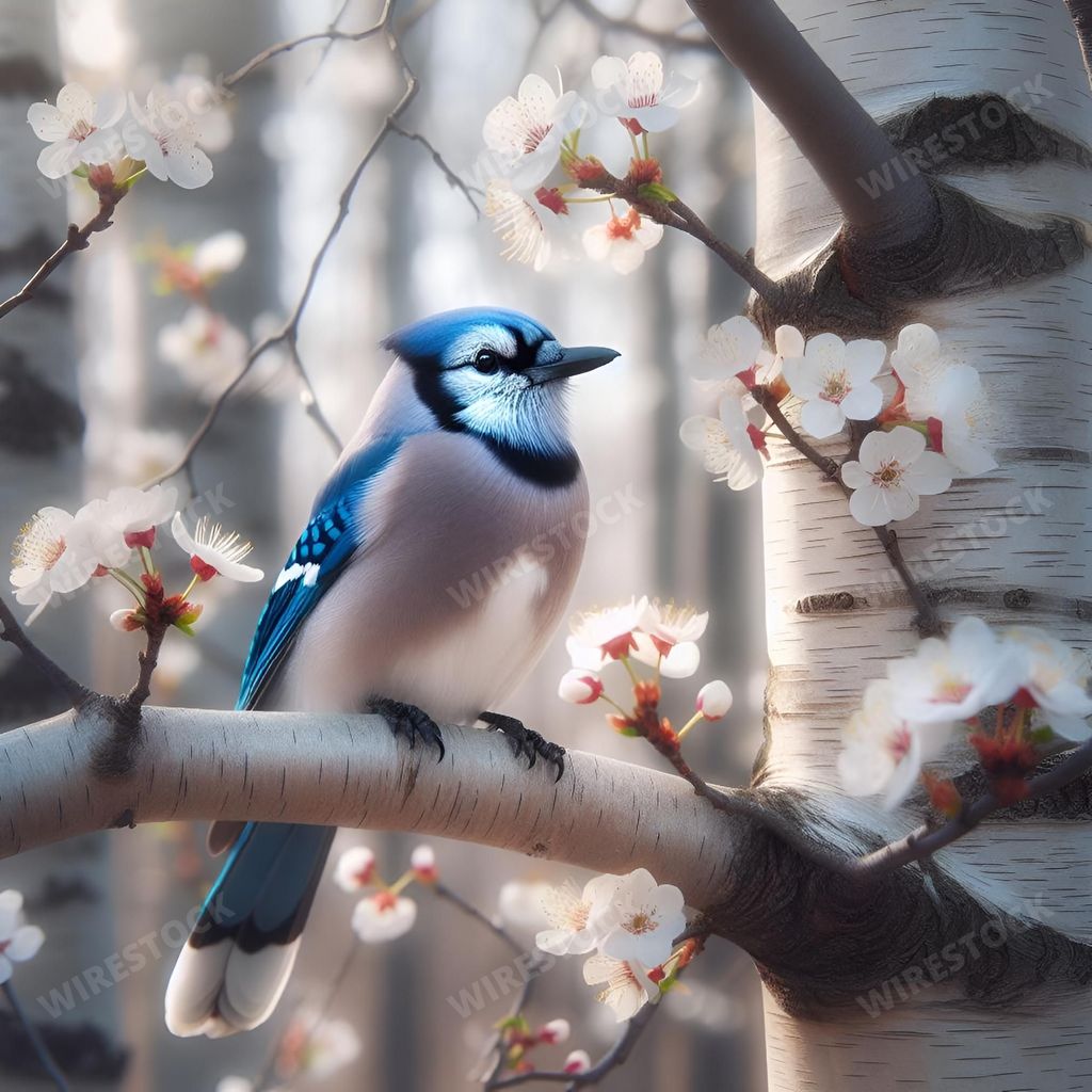 Amy in RL | Blue Jay Perched on a Blossoming Branch