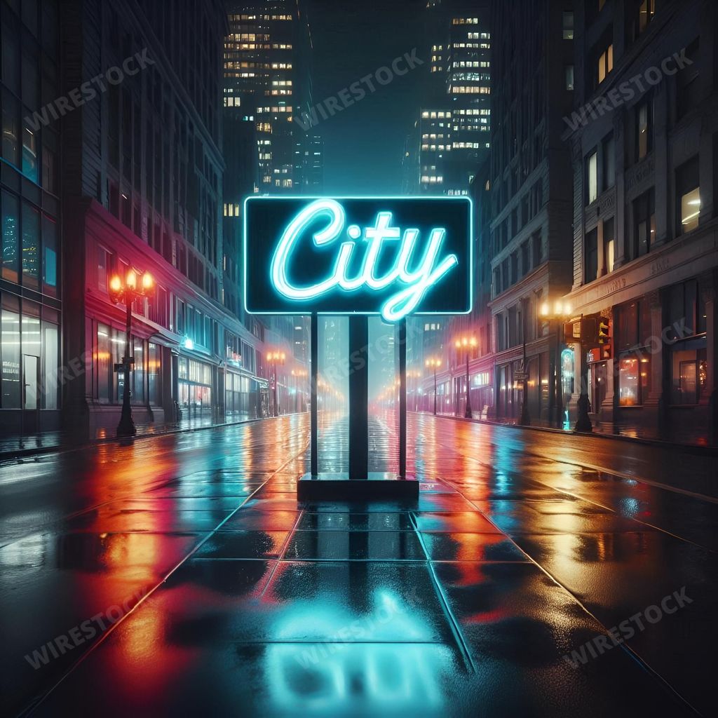 Amy in RL | Neon City Sign on Wet Street at Night