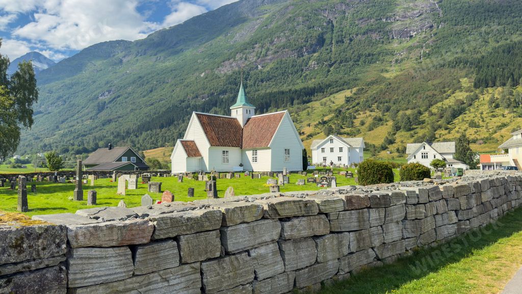 Caption:: Gamle Olden kyrkje, Olden, Norway