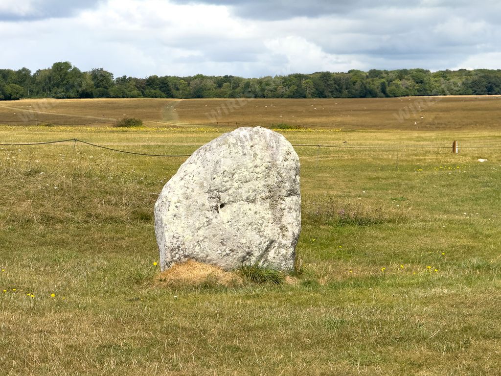 Media type: PhotoDescription: A solitary standing stone in a vast open field under a partly cloudy sky, capturing the essence of ancient landscapes.