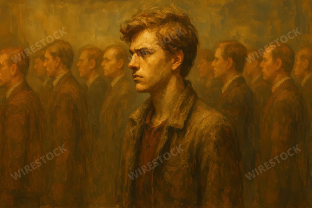 Knelstrom | Young man standing out in a crowd of similar figures.