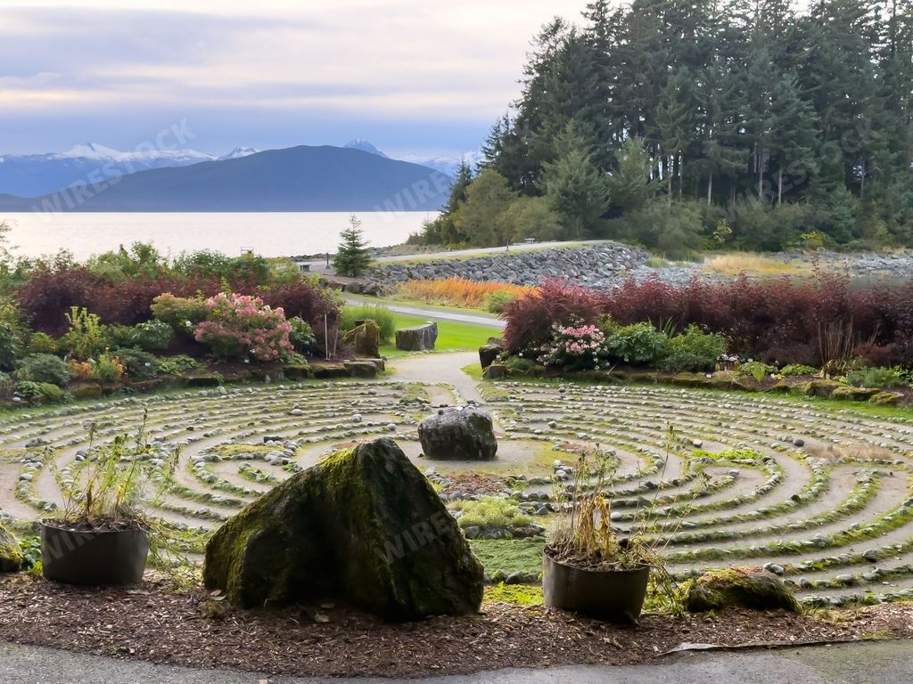 Caption:: Peaceful labyrinth garden overlooking the water at the Shrine of Saint Therese in Juneau, Alaska.Post date: Sep 29, 2025ID: 34840425File size: 4032x3024 pixelsFormat: jpeg